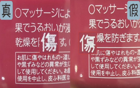 正品的資生堂尿素護(hù)手霜的字體印刷都是資生堂獨(dú)有的絲網(wǎng)印刷技術(shù),字體看起來(lái)要粗一些,也不是很整齊。而假貨的資生堂尿素護(hù)手霜的字體要細(xì)一些,而且非常的工整。