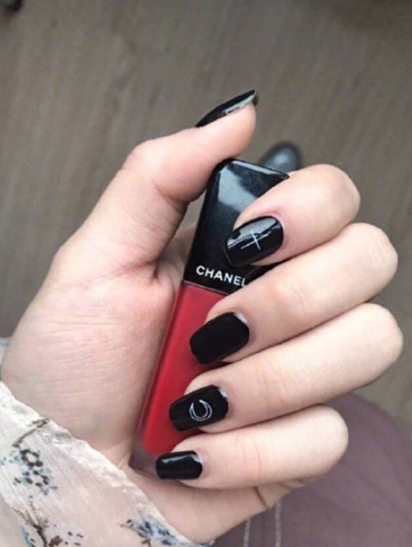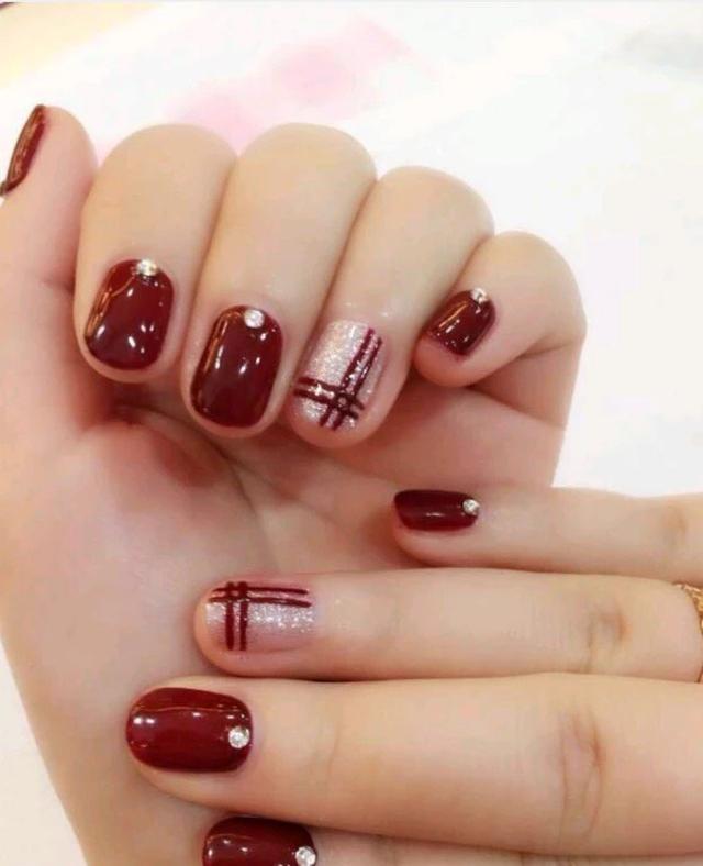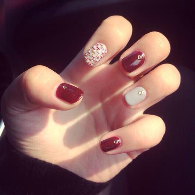 如果覺(jué)得五根手指頭都是酒紅色沒(méi)特色的話,不妨加點(diǎn)配色哦,做點(diǎn)小設(shè)計(jì),會(huì)有不一樣的效果哦。