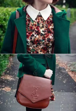 5. 墨綠色大衣+碎花裙+復(fù)古包包