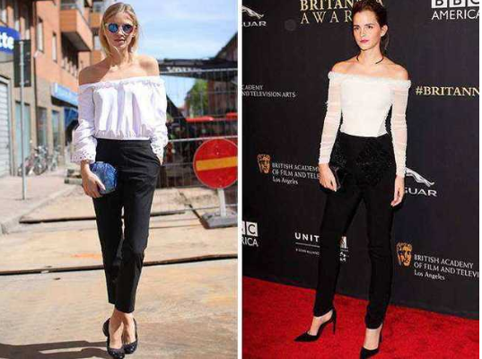 白色的小西服搭配黑色煙管褲,如果褲子太長,可以卷到腳踝以上剛剛好的九分長度,這樣才能顯腿長,黑色的圍巾讓整個look顯得沉悶非常,如果覺得進(jìn)空調(diào)房太冷,圍巾可以繞脖子卷一下搭配才好看。