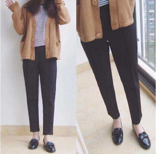 煙管褲的褲型好得不行,超級顯瘦!特殊定制面料很有垂感,而且不變形不褪色更不會起球??梢园俅钊魏紊弦屡丁?/p>