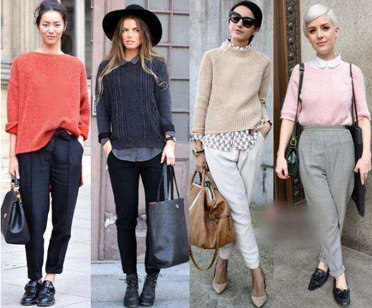 西裝煙管褲+修身針織衫