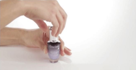 第一步:順時針推扭黑帽,將藍色精華液釋放到基礎精華液中。