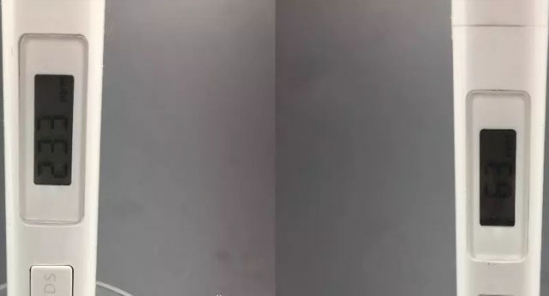正品菌菇水的水溶液體用TDS水質(zhì)監(jiān)測(cè)可以看到明顯區(qū)別,真貨的是233,假貨的是63。