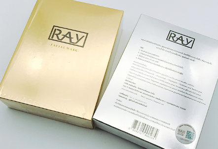 免稅店版本的正品盒子上RAYlogo下面的英文是全大寫,兩邊是有兩條杠,字體略粗,離logo比佐木版近一些,字樣是-FACIAL MASK-,背面全部是 泰文,沒有圖案。