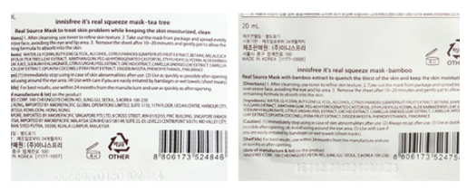 面膜的后面文字部分有一條長直線,而正品的比假貨的要長。