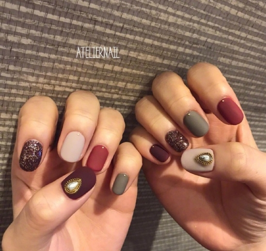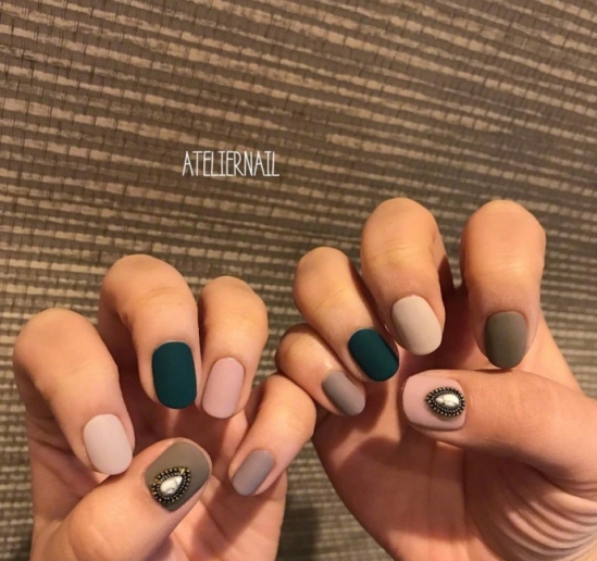 多種顏色配在一起的磨砂款美甲確實會更加吸睛一些,加入鉆點綴,輕輕松松提升時尚大氣感。