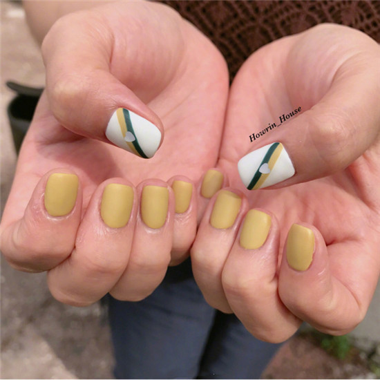 這一款非常小清新的秋季美甲,雖說只有春夏才能小清新,秋天一樣可以。