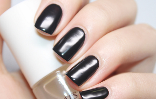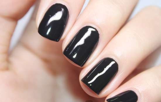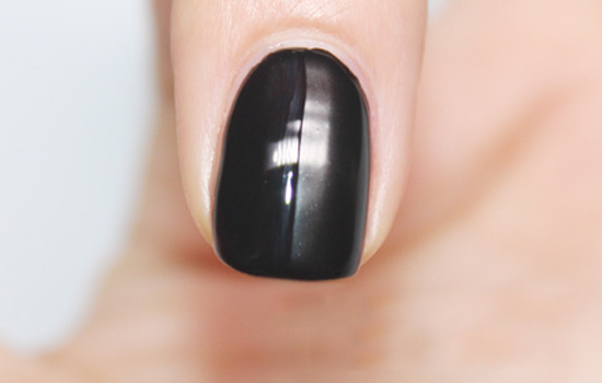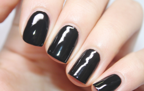 第一步:準備好所需的甲油和工具,修剪指甲并打磨好甲面,整甲刷上黑色甲油,待干。