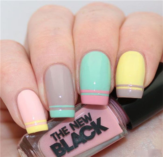 這款美甲是糖果色美甲,簡單又好看的多顏色搭配的法式美甲,既可愛有清新。