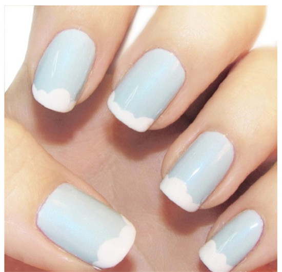 這款特殊的法式美甲是小清新的藍(lán)天白云圖案,簡潔又好看。