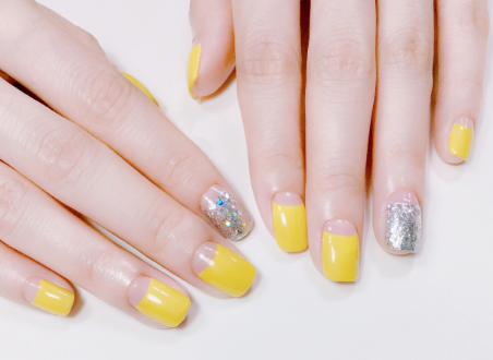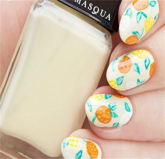 簡約的手繪水果美甲圖片,明黃色的配色,活潑又亮麗,這款美甲非常的清新可愛,既適合夏天,也適合秋天。