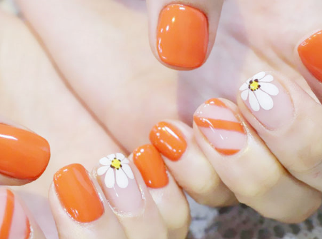 橙色系在美甲上其實(shí)就是南瓜色,膚色偏白的妹子可以嘗試更加鮮艷的顏色,而膚色偏黑的北鼻選擇偏暗的顏色則是最保險的。