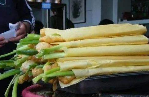 煎餅卷大蔥是山東省地方傳統(tǒng)名吃,傳統(tǒng)特色面食。吃起來很勁道,沒有一口的好牙可能就吃不了啦。