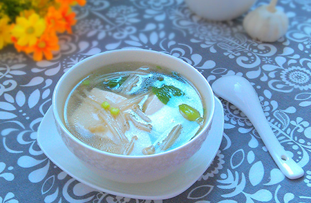 準(zhǔn)備材料:豬瘦肉150克,金針菇250克,豆腐1塊,姜3片,白胡椒粉,蔥花兒。