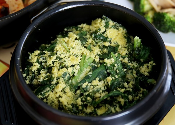 1、茼蒿洗凈后,水要濾凈,又不能太干,撒的玉米粉不能太多,以沾干水為宜。
