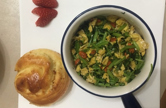 材料:茼蒿,雞蛋,枸杞,松仁。