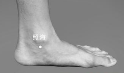 照海穴位于足內(nèi)側(cè),內(nèi)踝尖下方凹陷處。即:在我們腳上內(nèi)踝骨下方的凹陷處,用手掐按或用皮膚針敲打不要出血。