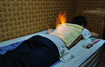 火療先采用由具有活血通絡(luò)、祛風(fēng)除濕動能較強的中藥侵泡的藥條敷貼于大關(guān)節(jié)等病變部位,然后進(jìn)行火療,加溫,加快藥物成分的吸收,使局部微循環(huán)增快,再通過一定的按摩手法以抱揉、點、屈、搖、推為主,使藥物到達(dá)病所,最終起到取出病邪,愈后良好的目的。