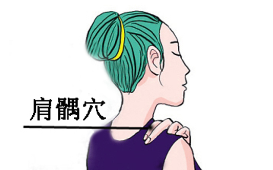 位置:在肩部,三角肌上,臂外展或向前平伸時(shí),當(dāng)肩峰前下方凹陷處[上臂外展至水平位,在肩部高骨(鎖骨肩峰端)外,肩關(guān)節(jié)上出現(xiàn)兩個(gè)凹陷,前面的凹陷為取穴部位。